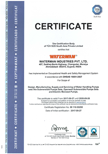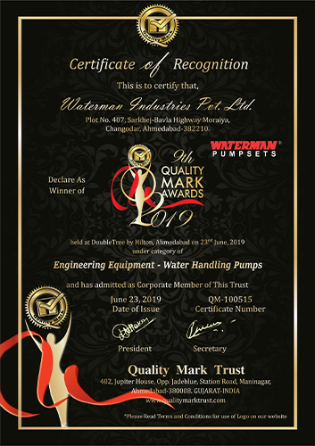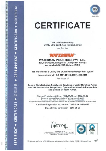 Accredited with ISO 9001-2008 by TUV NORD, Germany, Waterman Industries provides more than 3000 variants of water pumps for all your needs be it domestic or industrial.